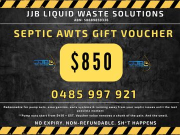 • Valid for pump outs, AWTS services, emergencies & septic call-outs